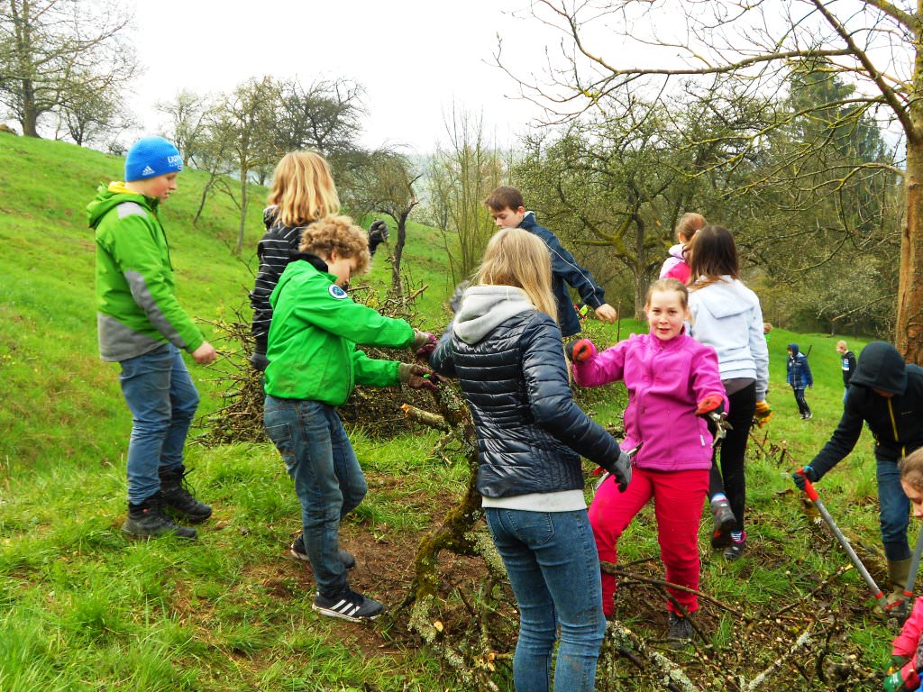Die Klasse 6a der Ernst-Heinkel-Realschule aus Grunbach fuhr mit den beiden Lehrkräften Frau Genoch und Frau Dunkel auf eine Streuobstwiese nach Oppelsbohm.