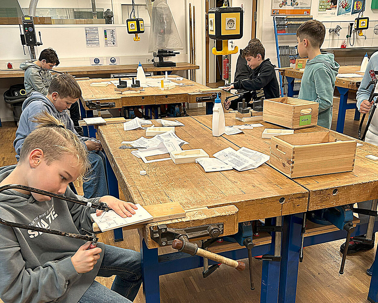 Derzeit wird unter der Anleitung von Technik-Lehrer Armin Wiesner ein Kaugummi-Automat hergestellt. Eine einfache Mechanik sorgt dafür, dass die Kugeln aus dem Automaten ausgegeben werden. Trotzdem für die Fünftklässler ein anspruchsvolles und komplexes Thema, das wir aber sicher auch gut meistern werden.