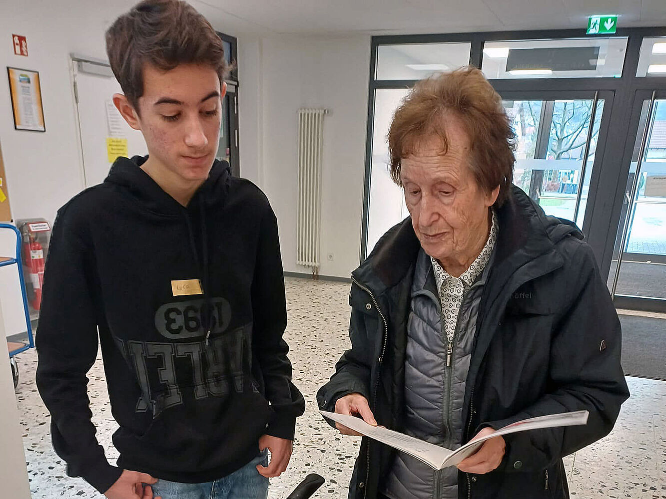 Die Jugendlichen hatten die Aufgabe, über die Gäste einiges zu erfahren: Infos über Namen, früherer Wohnorte, Familiensituation, Beruf, Hobbies, Lieblingsessen und Lieblingsfernsehsendungen wurden ausgetauscht. Es war sehr schön zu sehen, wie junge und ältere Menschen intensiv miteinander ins Gespräch kamen und wie selbstverständlich, empathisch und respektvoll die Schüler mit den über 80-Jährigen umgingen.
