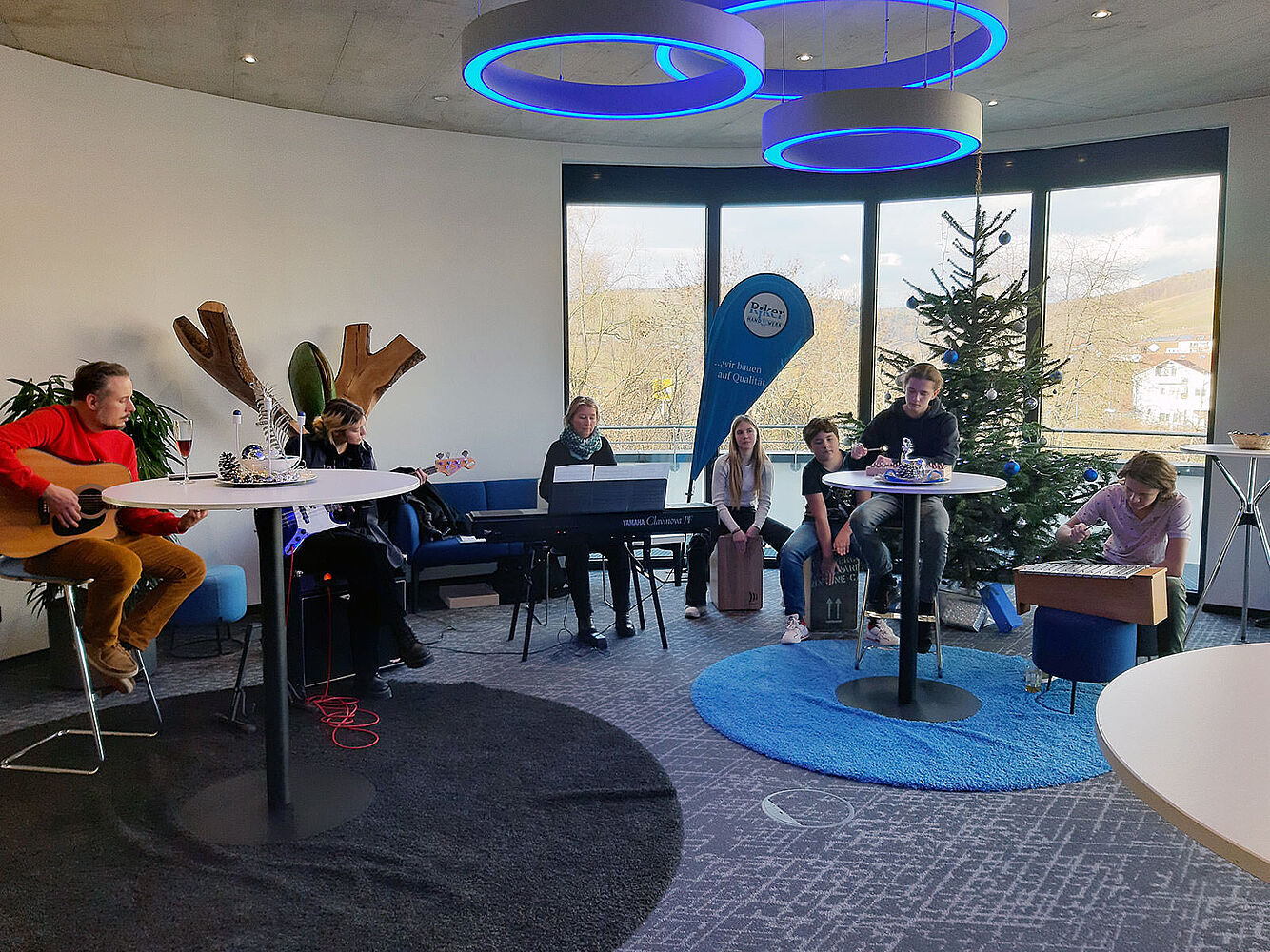 Musikalisch umrahmt wurde die Eröffnung von unsere Schulband. Auch einige der jungen Künstlerinnen und Künstler waren mit ihren Familien zu Besuch und es wird sicherlich noch weitere Möglichkeiten geben, die Bilder in der Ausstellung anzusehen. Diese wird nun ungefähr ein halbes Jahr bei Riker Immobilien zu sehen sein.
