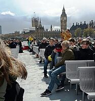 Am 26.04.2016 waren wir in London. Dafür mussten wir früh aufstehen, denn der Bus fuhr bereits um 7:30Uhr los. Nach ca. zwei Stunden erspähten wir die ersten Wahrzeichen von London: das Hochhaus „Gherkin" und die „Tower Bridge“. Natürlich machte jeder sofort ein Bild davon. Etwas später kam dann der Reiseführer Uwe zu uns in den Bus, zum Glück konnte er Deutsch. Während wir durch Londons Straßen fuhren, erzählte er uns so einiges über London und die Sehenswürdigkeiten. Wir sahen unter anderem Big Ben, Buckingham Palace, Parlament und das London Eye. Dort beendeten wir dann auch die Stadtrundfahrt und wir durften in Kleingruppen durch die Stadt bummeln. Wir gingen shoppen! Nach 1 Stunde und 15 Minuten trafen wir uns wieder und machten eine coole Bootsfahrt auf der berühmten Themse. Es war kalt, aber richtig cool. Wir fuhren unter vielen Brücken durch, eine davon war natürlich die Tower Bridge. Nach ca. einer Stunde stiegen wir an der Haltestelle „Greenwich“ aus und liefen zum „Nullmeridian“. Dieser Punkt befindet sich auf einem kleinen Berg und so hatten wir noch einmal einen schönen Blick auf London, bevor es zurück zum Bus ging. Auf der Rückfahrt schauten wir dann einen Film im Bus an.